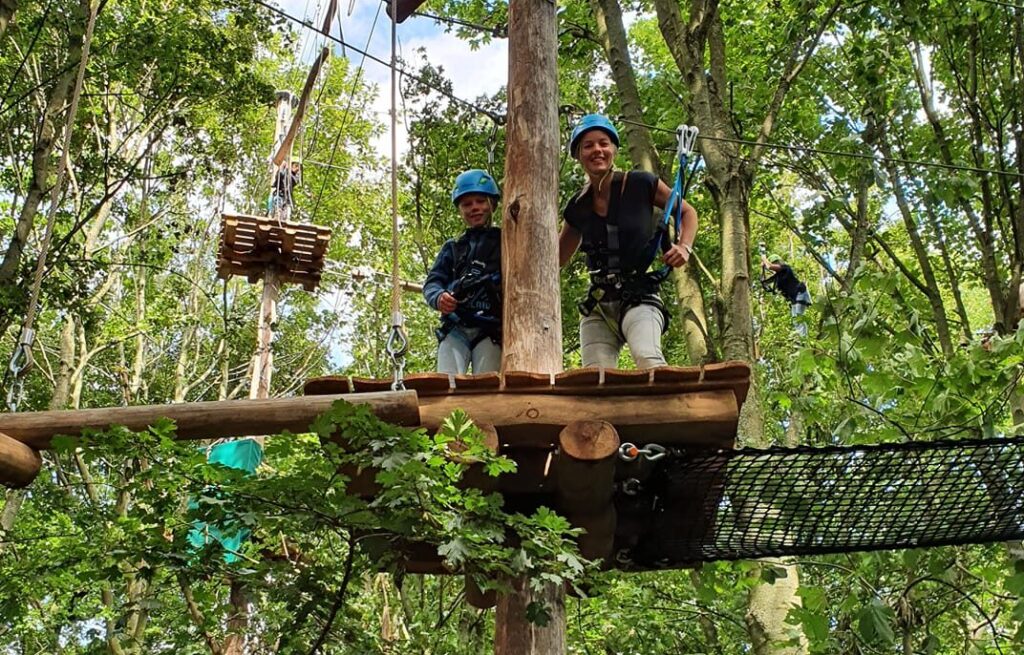 In het klimpark is voor elk niveau een uitdagend traject te vinden. Je krijgt een helm op, een gordel om en je wordt voorzien van een klimzet. Een van onze topinstructeurs zorgt dat jullie de tips, de trucs en de geheimen van goede – veilige – klimtechnieken leren. Samen bepalen jullie de route: start je bij de havik, de spotvogel of misschien bij de buizerd?